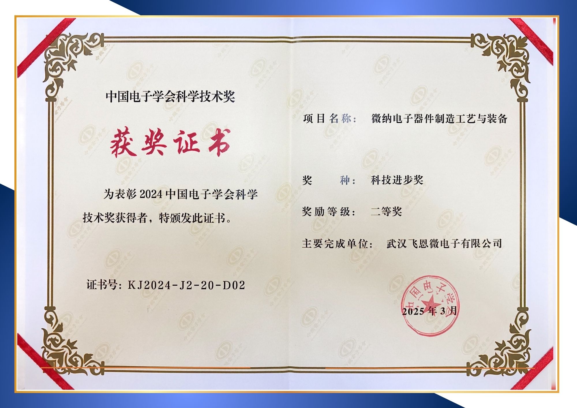 近日,中國(guó)電子學(xué)會(huì)正式公布2024中國(guó)電子學(xué)會(huì)科學(xué)技術(shù)獎(jiǎng)名單,由武漢飛恩微電子與武漢大學(xué)聯(lián)合申報(bào)的“微納電子器件制造工藝與裝備”,榮膺科技進(jìn)步二等獎(jiǎng)。